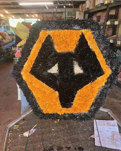 A bespoke funeral tribute badge crest inspired by Wolverhampton Wanderers. Expertly designed with precision detailing reflecting true club colours.